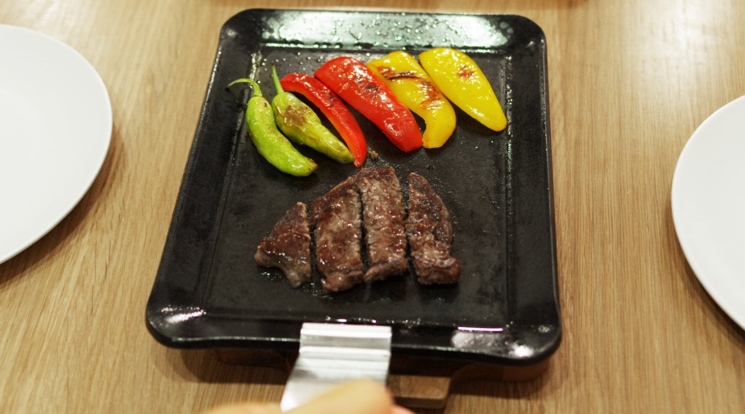 鉄板は蓄熱性が高く、食材の温度に左右されにくいため比較的早く焼けます。だから回転率もよく、複数人で十分お使いいただけます。
